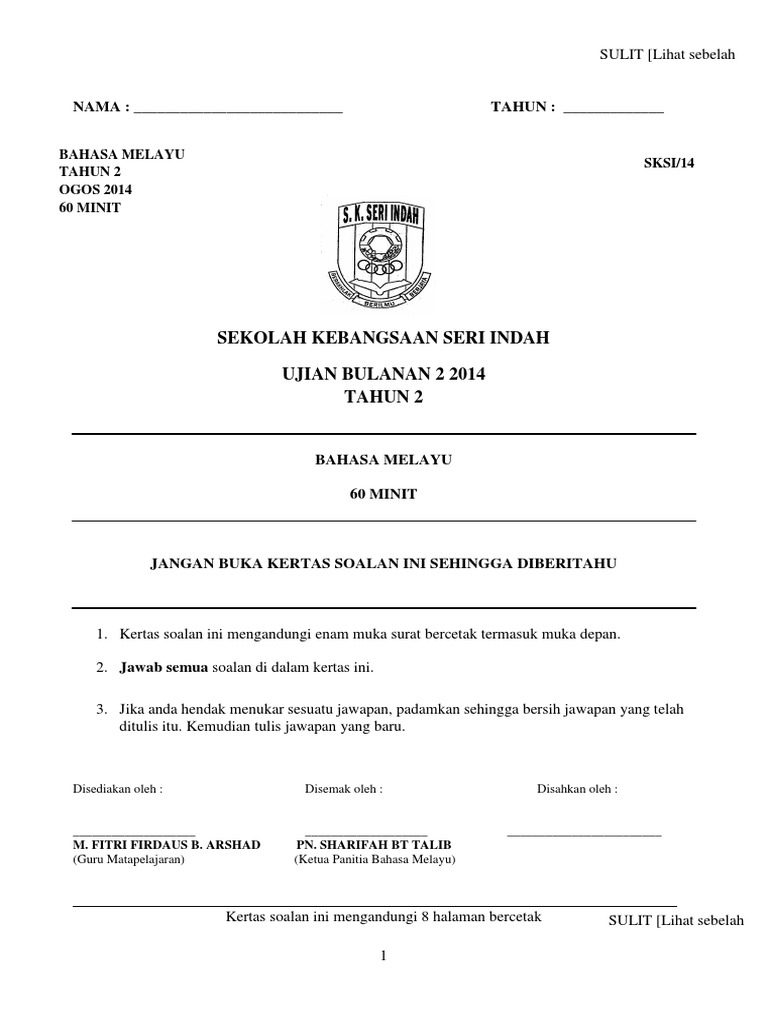 Ujian Bulanan Bahasa Melayu Tahun 2 Pdf
